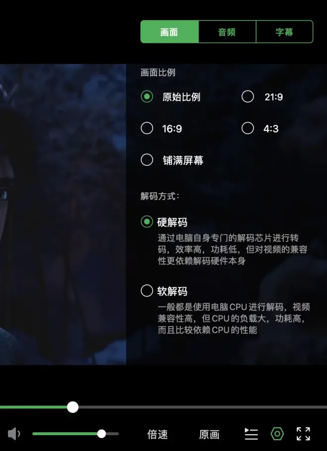 必备的切换音轨、字幕功能一个都不少,可以切换内置字幕,也可以手动加载字幕,可以说绿联云影视使用体验和Jellyfin以及其他NAS内置影视库是基本一致的,唯一不足的地方是目前必须在客户端、APP上播放,不能像其他媒体服务器那样直接通过网页就可以播放、管理:
