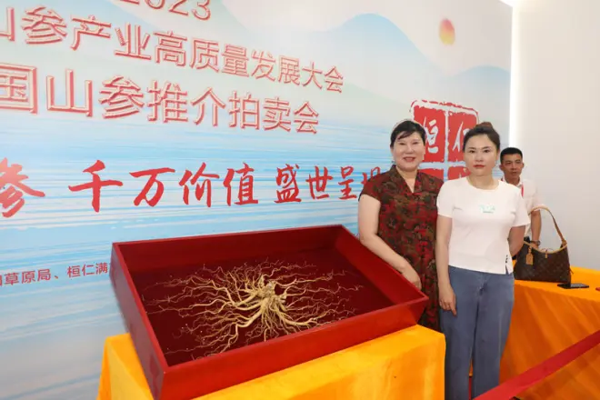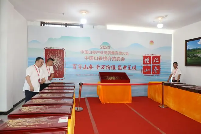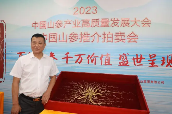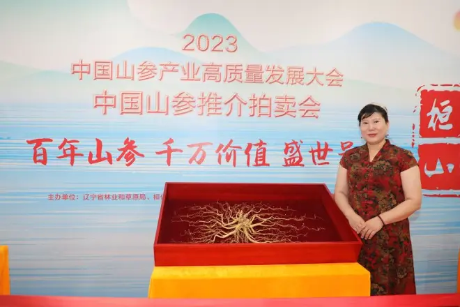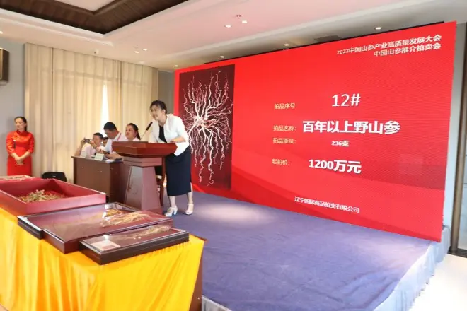 2023年7月12日,由辽宁省林业和草原局、桓仁满族自治县人民政府主办的中国山参推介拍卖会,在桓仁县江南水镇游客接待中心举行。12号百年以上野山参拍品,以1800万元的竞拍价,被25号以1800万的天价拍下。该百年山参重236克,起拍价1200万元,经过现场拍家的10次竞价最终被25号一先生拿下。此次拍卖会由辽宁国际商品拍卖有限公司承办。