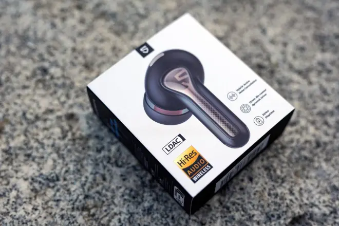 ▲背面是硕大的耳机渲染图,泥炭的Capsule3 Pro主动降噪蓝牙耳机,同样具备小金标——Hi-res认证,支持LDAC无损音质传输协议,这一点也是延续了上一代的优秀传承,音质方面看来是下了功夫。