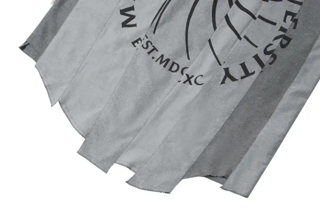 下摆袖口使用提花扁机左右袖不对称设计,下摆也有着错位设计并添加全手工跨缝线,使其更加贴合「克苏鲁」这个神秘的主题