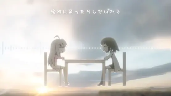 久居不出的真寻走出房门,和美波里一起坐在了餐桌前,背景是雨过天晴。在下曾经在动态中聊到过“餐桌”这个多次出现在动画中的、代表着家人之间亲情的意象。这里的歌词,是兄妹俩敞开心扉的对话。