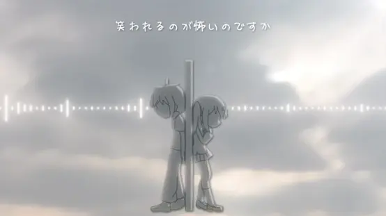 这段参考了原作第3话与动画第1集中的相关情节,高中生真寻一脸苦涩地望着“被大家所爱着”的初中生美波里,转身走进阴影里;时光飞梭,变成高中生的美波里发现哥哥不在了,匆忙起身去追他。这里有个小彩蛋,美波里左侧的人群中除了有枫之外,还混进了在下和白糖。