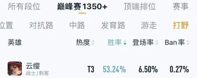 数据变化:自3月30日降温后,在巅峰赛1350+分段与顶端排位分段的登场率均有降低,且胜率已变为倒数: