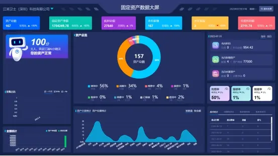 江湖卫士RFID固定资产管理系统,作为一款物联网RFID技术应用的创新性软件,在本次的升级当中,在功能上上线了江湖云-固定资产数据大屏,通过大屏展示的方式,实时掌握资产信息,对资产数据进行实时同步,并对资产使用情况进行对实时有效分析,让资产数据信息更加直观的呈现在眼前!