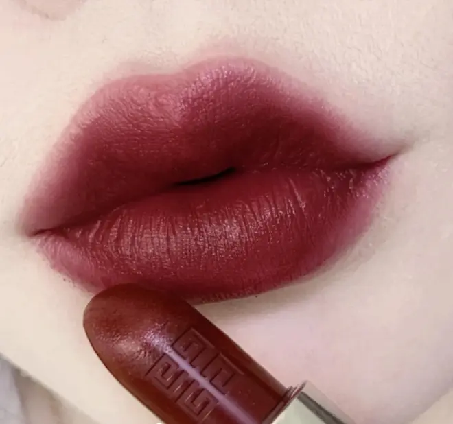 而且这只色号的层次感非常强,刚上嘴的话是比较浅一点的,成膜之后它的颜色会变深一点。虽然它比较漂亮,但是它还是比较挑肤色的,适合白皮的妹子和浅唇的妹子用。