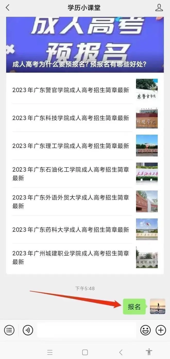 搜索:【学历小课堂】公众号,对话框输入:报名