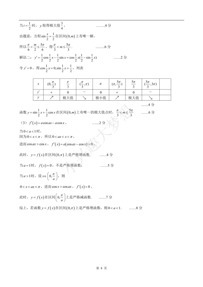 2023届杨浦区高考数学二模(答案)