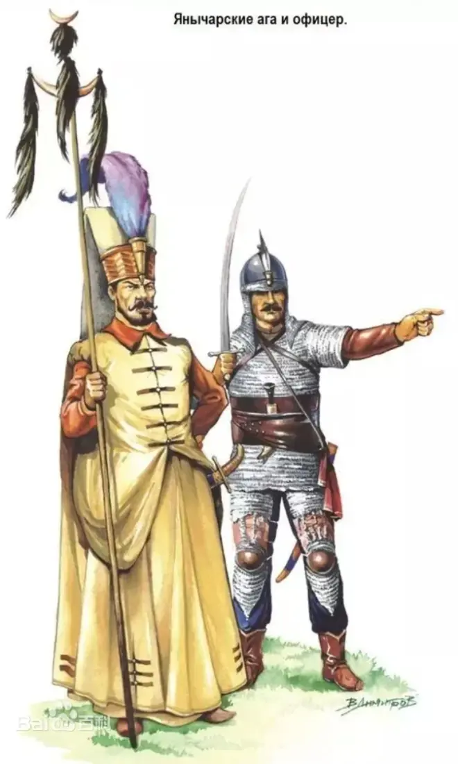 这样庞大的军队里既有穆斯林也有基督徒,优秀骑兵固然很多,精锐步兵也不少。步兵中坚的耶尼切里近卫步兵(苏丹亲兵)的兵源来自地方上进贡的基督教男孩,他们常年在军营里严酷训练。耶尼切里近卫步兵不仅是优秀的弓箭手、弩手、火枪手和炮兵,土工作业技能也比大部分西方步兵优秀,最明显的特色是腰间别着一把铲子。英国驻君士坦丁堡大使曾经嘲笑耶尼切里近卫步兵和英国步兵相比更像是挖煤工,却被人提醒道:“不可以忘记正是这些挖煤工从西方人手中夺取了那些著名的要塞。”