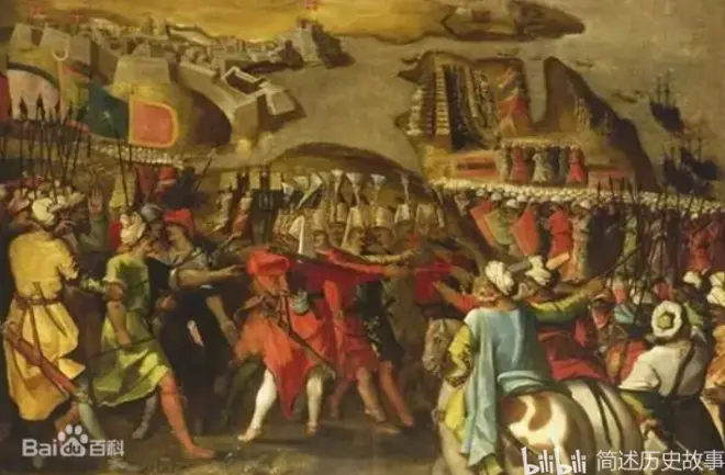 (六)1532年苏莱曼大帝再次试图占领维也纳,但因恶劣天气导致土军的大部分人马生病,同样与第一次出征维也纳一样因恶劣天气丢失大量的围城器械,还会因补给线拉得过长阻碍行军,苏莱曼大帝还未到城下就被迫撤退。1540年匈牙利争端再起,为苏莱曼大帝一雪维也纳之耻提供机会。一些匈牙利贵族建议邻国的奥地利大公斐迪南一世与已故匈牙利国王拉约什二世的家族联姻以继承匈牙利王位,根据之前的协议拉约什二世死后无嗣,由哈布斯堡家族继承王位。但其他贵族则支持现任国王绍波尧伊·亚诺什,绍波尧伊得到苏莱曼大帝的支持,但没有获得欧洲基督教国家的承认。1541年哈布斯堡王朝与奥斯曼帝国的冲突再起,并试图围攻布达,但哈布斯堡王朝的努力最终失败,他们丢失更多的要塞。斐迪南一世和他的兄长、神圣罗马国王查理五世被迫与苏莱曼到达缔结一项羞辱性和约,和约规定:斐迪南一世放弃对匈牙利王位的企图,并每年向苏莱曼大帝缴纳一笔固定的费用以换取苏莱曼大帝对仍处于他控制下的匈牙利部分领土的承认。更具象征性意义的是和约中并未称查理五世为神圣罗马国王,而只称他为西班牙国王,因为苏莱曼大帝认为自己才是真正的恺撒和神圣罗马帝国的合法继承人。1542年法兰西王弗朗索瓦一世为了对付哈布斯堡王朝的一次普通威胁请求恢复与奥斯曼帝国的联盟,为此苏莱曼大帝令海雷丁帕夏带领200艘大帆船开往西地中海支援法国。海雷丁帕夏开往法国途中洗劫那不勒斯和西西里岛沿海地区,到达法国后弗朗索瓦一世把土伦港让给海雷丁帕夏作为他的海军司令部。在该次远征中海雷丁帕夏于1543年攻占法国的尼斯,1544年弗朗索瓦一世与查理五世讲和,从而结束法国与奥斯曼帝国的短暂联合。