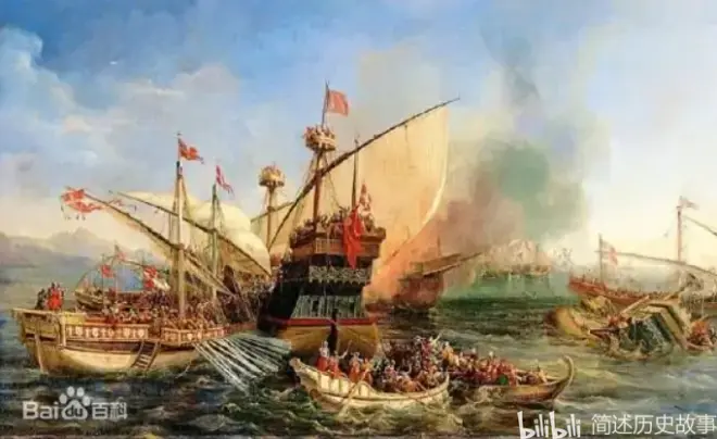 (五)1538年9月27日夜多利亚召集所有神圣同盟的联军将领开会,他们决定在次日继续保持压制态势逼迫海雷丁同自己展开对决,但在计划得以实施之前同样耐不住性子的土军决定返身迎战,并在黎明时分开始部署战阵。作为联军中流砥柱的热那亚-西班牙舰队从一开始就表现得有些中漫不经心,主要原因就是多利亚身上背负着太多顾虑,不可能为曾经的死对头去放手一搏。作为热那亚的名门望族他深知自己的财富、地位和影响力都源自手头能调动多少战舰,即便委身于强大的西班牙君主这些因素也始终维系着热那亚共和国的特殊商业地位,因此他可能故意拖延时间让部下用3小时才完成所有战舰的起锚工作。随他一同前来的西班牙人和葡萄牙人也或多或少的地有相同心态,手头还有不少完全依赖风力驱动的全装帆船,间接配合多利亚的游而不击行为。外海的基督教舰队非常分散,各国的小舰队混杂在一起,桨帆船和帆船也乱糟糟地,导致缺乏协调。与此同时抢先动手的奥斯曼舰队同威尼斯舰队交火,他们巧妙地借助微风环境用大量桨帆船进攻对方的大型加莱塞战舰。加莱塞战舰虽具有桨帆船的划桨动力,却还是因上层堆砌的尾楼、重炮和桅杆结构而相当笨重。在缺乏风力协助的情况下加莱塞战舰毫无意外地被奥斯曼小船给迅速包围。好在这种对机动性的巨大牺牲换来足以比肩卡拉克大帆船的猛烈火力,在附近的联军船只赶到增援之前都没有土军占得任何便宜,反而让敢于向自己挑战的敌船都伤痕累累,等到海风逐渐强劲起来精疲力竭的双方才勉强脱离接触。