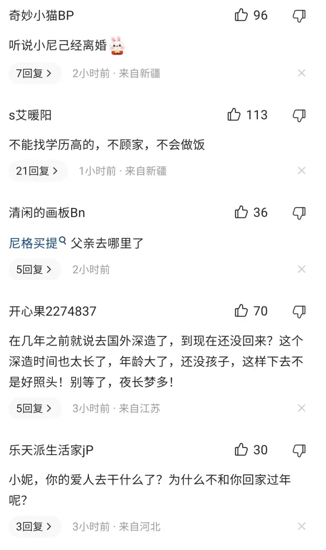 所以这些年随着尼格买提的走红,他的家庭生活也被越来越多的人关注,在上个月春节回家的时候,尼格买提就单独去的妈妈那里,在专门录制的视频里,也是只有自己的声音,看不到老婆的影子,那时候评论区就有好多网友在问老婆去哪了,还有人关心两人结婚这么多年怎么还没有孩子。