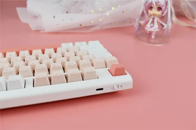 键盘的机身做了哑光处理,更具质感和档次,为了精简键盘的尺寸,开关和Type-C接口被安置在侧边的左上角,容易操作的同时便于线连使用。