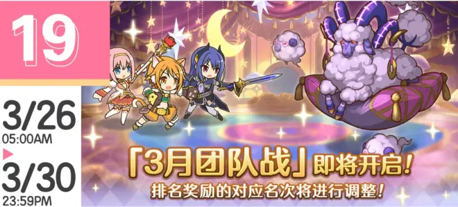 3月9日中午,简体字版官方发布了3月半月刊(下),其中团队战预告图的下方“排名奖励的对应名次将进行调整”引起了一些玩家的注意。