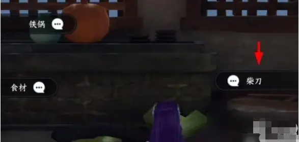 5、线索四:在厨房灶台上,选择拿走柴刀。