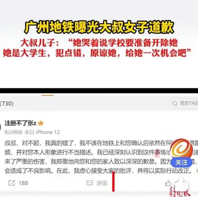 在自证清白大叔的儿子没发声之前,这位女硕士还嚣张地说,我不会道歉的,四川大学也没有说我有问题,如果那个“猥琐”大叔没有问题,他为什么不站出来回应。