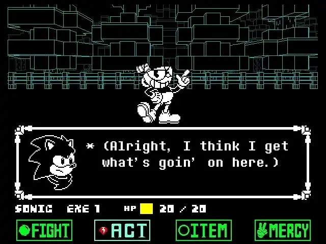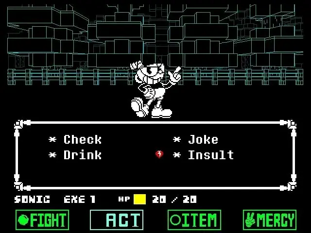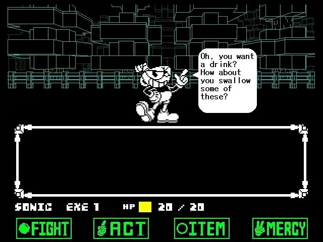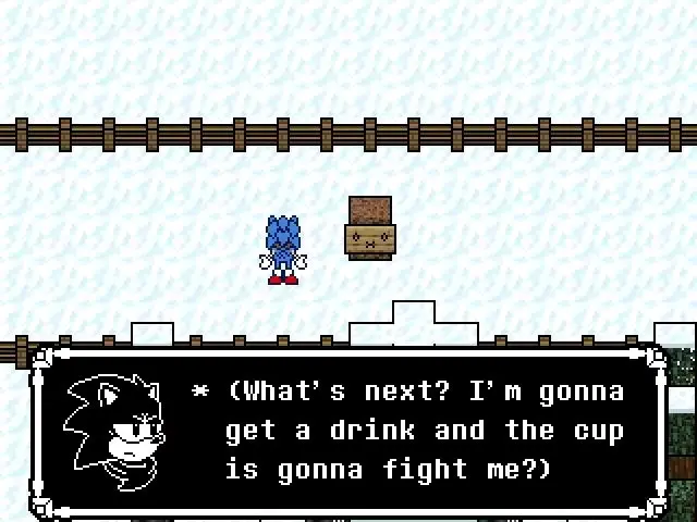 一只小茶杯头在战斗框底部向灵魂不断射击,子弹是白色或者蓝色的。