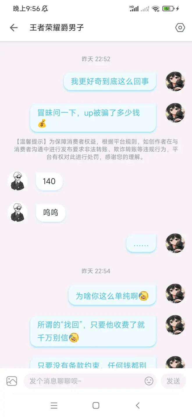 ”(骗子说的是“钱已经划给那个被骗的人) ……好嘛~这可怜的小倒霉蛋还是初亏了~ 行吧……吃一堑长一智 至于我为啥手贱发这个?嗯,就因为我手贱 我只是想最后快速的展示一下我截图所得,毕竟那个骗子的主页被锁了,我总得总计一下: