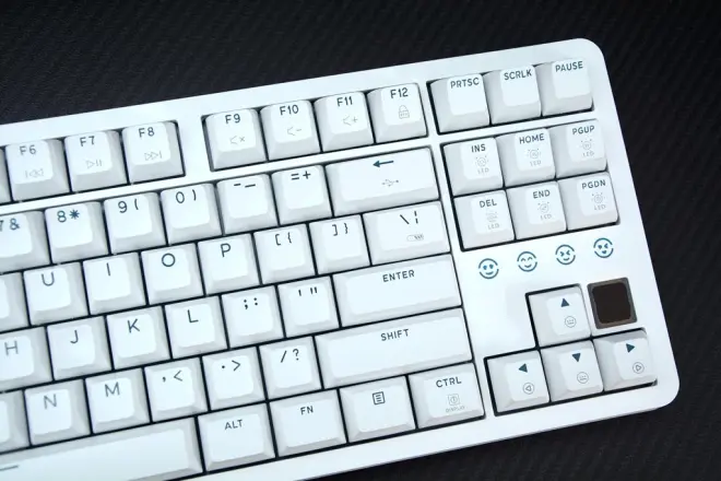 黑峡谷Y3采用常规的87布局,白色边框和键帽,四角进行了倒角处理,这点与方方正正的X系列有所不同。