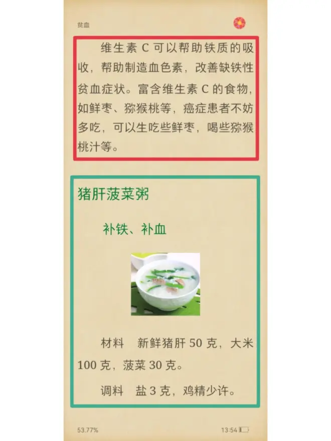 ‼️化疗的患者特别容易贫血,我一直以为老爸是手术导致的贫血,还咨询了医生,为了给老爸补血,又查了好多资料,都说让补充造血营养,书上的资料给大家截图分享出来了,需要的保存就好了!