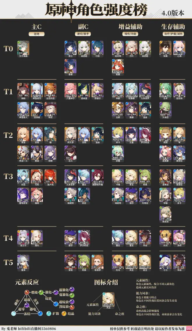 3、榜单现所有五星角色默认为0命强度,现所有四星角色默认为满命强度,(部分角色较为特殊如班尼特等),风系辅助角色默认装备4风套减抗拥有一定的辅助能力,生存辅助不以奶量为绝对标准