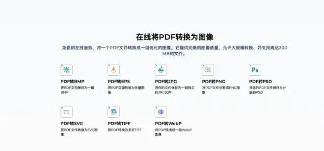 在线将PDF转换为图像免费的在线服务,将一个PDF文件转换成一组优化的图像。它提供完美的图像质量,允许大规模转换,并支持高达200 MB的文件。虽然功能比较少查是上传的文件大小可以支持到200MB,还是挺Nice的呢
