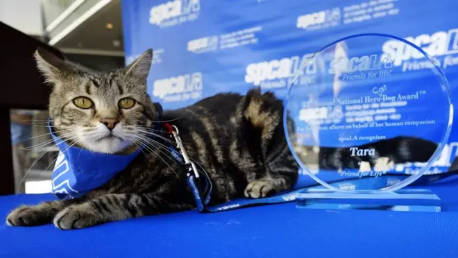 这条监控录像传到 YouTube上后,引起了许多网友的关注和赞许。在第二年,塔拉还因此获得了SPCA颁发的英雄猫咪的称号,奖励是一年份的猫粮~