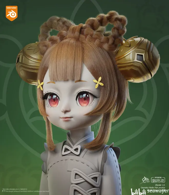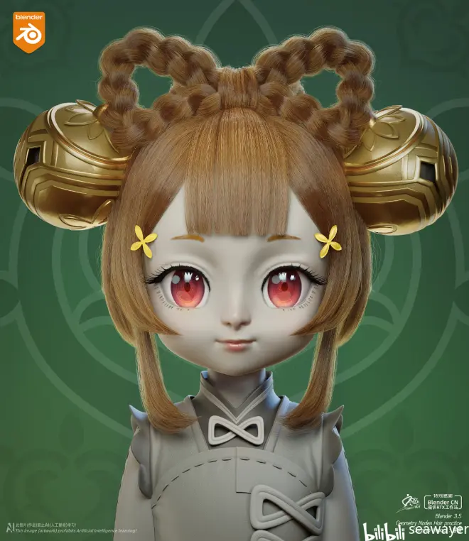 辫子的制作是个比较麻烦的点,GN的辫子节点组虽然有许多参数,但在实践中还是发现它的一些局限,比如无法自身扭转控制,某段区域无法缩放控制。现在自己正在琢磨节点组来实现更加能控制的辫子节点。当然,自己这点水平估计猴年马月,哈哈