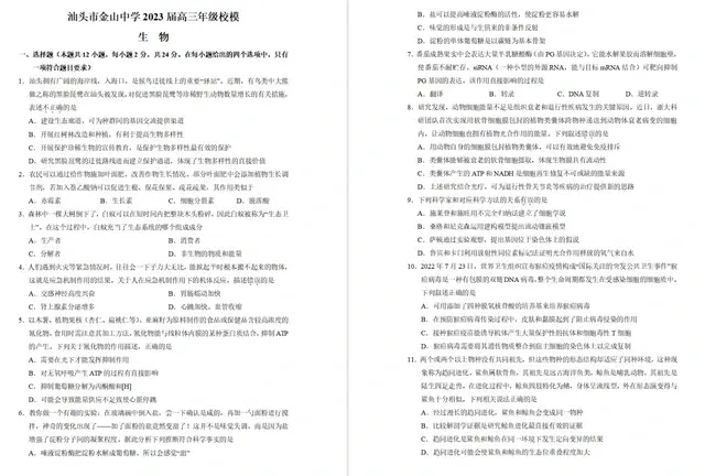 广东省汕头市金山中学高三校模拟考试