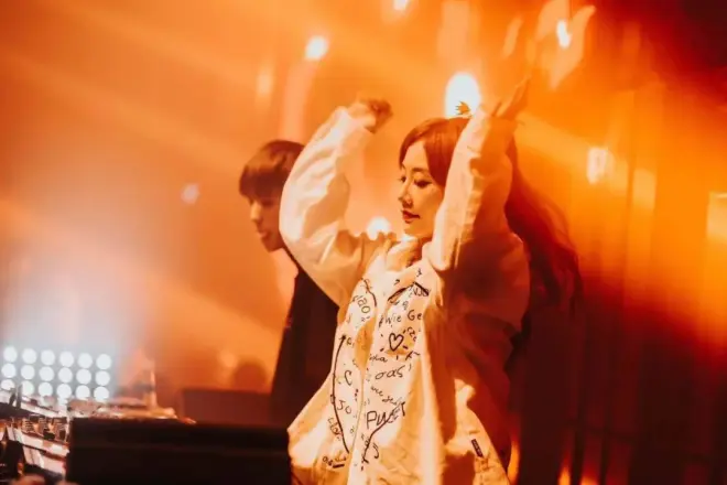 身高175cm的DJ 77,曾是职业模特的她在舞台上开朗活泼。本可以靠颜值吃饭,却在夜店打碟累积三年DJ经验之后,又学习了1年电子音乐制作。