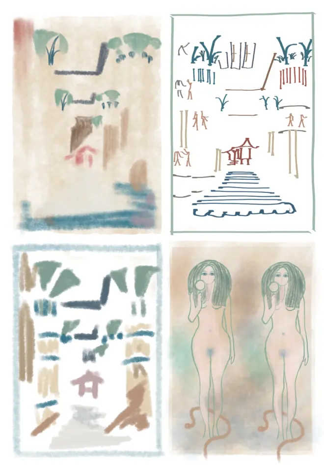左:#十天成为艺术家# D1作品 《Stage 4 1》+D9作品《从欢迎来到青空下到放射柏拉图洞窟》