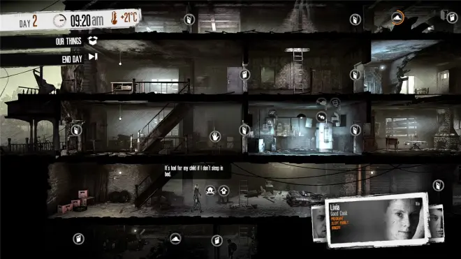 《这是我的战争》别称《我的这一战》,是由11 bit工作室所制作的黑暗求生游戏,本作与一般的战争游戏不同,玩家控制的并不是什么士兵,而是一群在战火中求生存的平民,开发商给出的理念是让玩家从另一个角度去看待战争。
