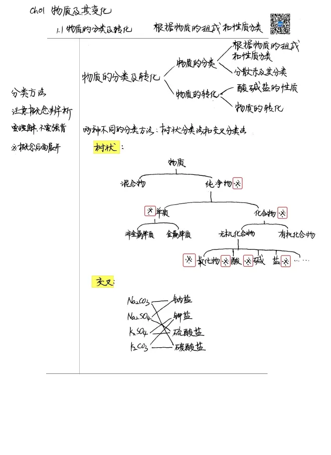 树状:展开讲了纯净物构成,化合物,单质,氧化物(重点,基于氧化物的定义可以记住很多化学方程式),酸(重点),碱(重点),盐(重点).