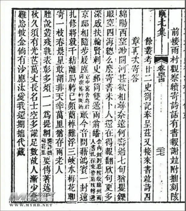 清嘉庆七年(1802)冬,乾嘉文化圈里的“大佬”、江苏阳湖人赵翼收到李调元从绵州寄来的书信,信中附有追怀二人师友之谊的4首七律。赵翼特别感动,赋诗答和。其中第一首第一句云“绵阳西望渺关河”,这个“绵阳”,已经无可置疑是指绵州(图4)。