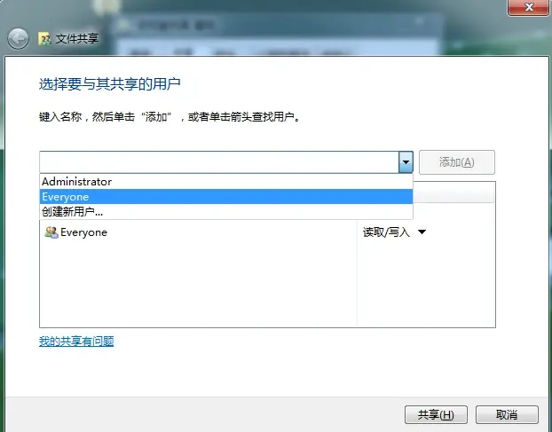首先把手机与电脑连接到同一个局域网络内,在电脑上新建一个共享文件夹-添加“Everyone”用户 读取/写入 权限,点击共享确认。