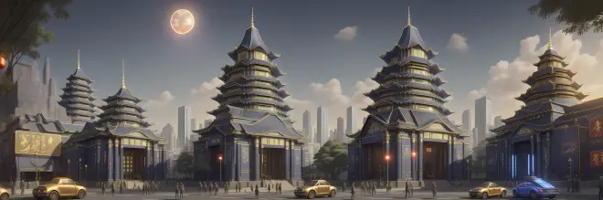 » [AI作画]Stable Diffusion——未来的中国:晨昏蓝金