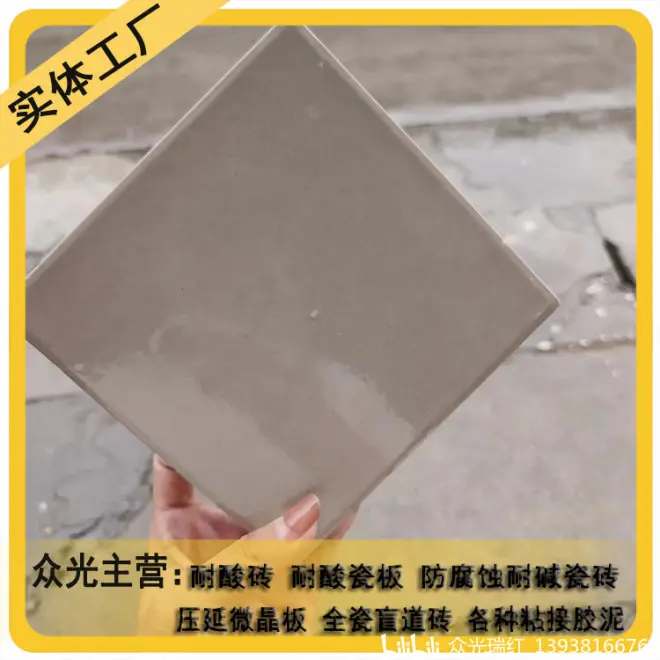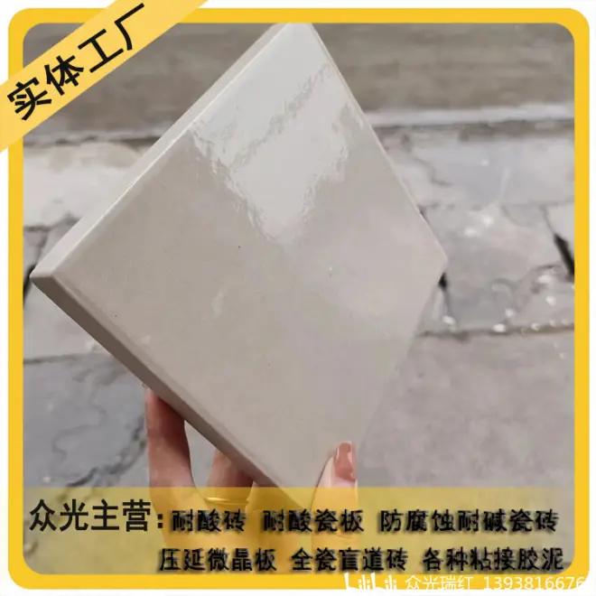 众光耐酸砖是以石英、长石、粘土为主要原料,经高温氧化分解制成的耐腐蚀材料,产品背部加燕尾槽,施工时便于与耐酸泥牢固粘接,不易脱落。即可保证工程质量,又能延长工程使用寿命,是化工、石油、电力、化肥、化纤、冶炼、制药、制酸、制碱等工业理想的防腐材料。我单位可根据用户要求,生产大小长短规格不同规格的产品。我公司设有一支*业性防腐施工队,拥有一批过硬的设计、施工技术人员,曾服务过大中小化工厂、冶炼厂等各种防腐设备,可承接各类防腐工程及污水工程。