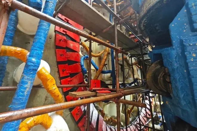 沿着笼梯拾级而下,24米深的基坑内,萦绕着因积极冻结作业产生的低温冷凝雾,协作队伍正在逐渐拆除洞门中央的冷冻管。