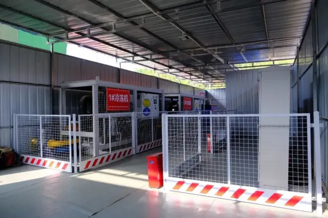 本次始发端端头使用的“冷冻法”,为浙江省水利行业首次应用此类工艺。该工艺最早在矿井施工中广泛使用,适用于涌水、流沙淤泥等松散含水复杂地层条件的施工,工艺原理是利用冷冻机对冷冻液进行降温,并通过循环管路输送到需要冷冻的区域,使温度向外扩散产生冻结效果。