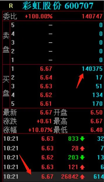 7月14日周五,早盘集合竞价,彩虹股份跳空高开7.26%,表现很猛。