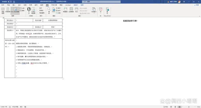 (3)Web版式视图:该视图主要以网页形式查看word文档的,当然也适合查看包含宽表的文件,效果可以参考以下截图: