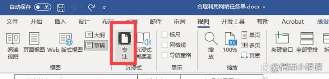 (1)专注,全屏显示文档内容,有利于消除干扰信息,比如任务栏通知等。