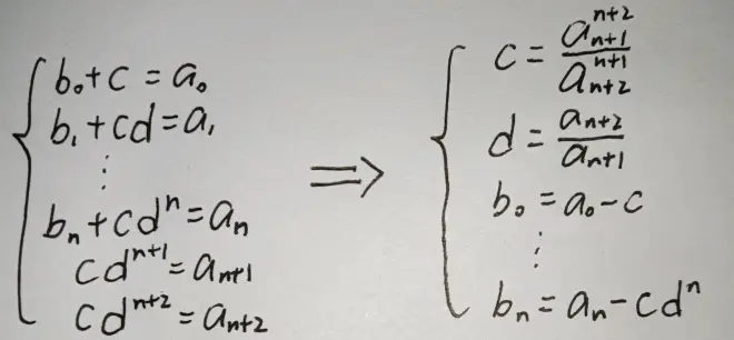 由于构造的函数引入了n+3个参数,在最理想的情况下,它能达到n+2阶近似。对照系数可列方程组,并且容易求解