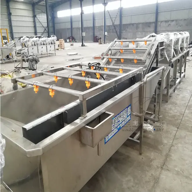 清洗风干线中带有喷淋装置,可清洗不同的水果,达到洁净的清洗洁净。整机采用304不锈钢材质制作,在工作的情况下,水流冲翻浪的状态,模拟手工清洗可有效将果蔬清洗干净,不会损伤果蔬的表皮,上部设有高压喷淋,可将漂浮在表面的果蔬冲击到底部然后通过底部的漩涡气泵将蔬菜再冲上来,这样来回清洗,达到了果蔬清洁度,减少了人力成本,降低了劳动强度,性能稳定。该机自动化程度高,可配套流水线使用。气泡喷淋清洗机主要适用于红枣 白菜 大葱 小葱 洋葱 西兰花 菜花 芥蓝 西芹 莴笋 紫甘蓝 小乳瓜 苦瓜 丝瓜 黄瓜 冬瓜 笋瓜 小米椒 螺丝椒 大炮 二炮 线椒 彩椒 尖椒 红美人 绿美人 四季豆 豆角 荷兰豆 甜豆 豇豆 豆王 圆茄 长茄 茄王 佛手瓜 西红柿。
