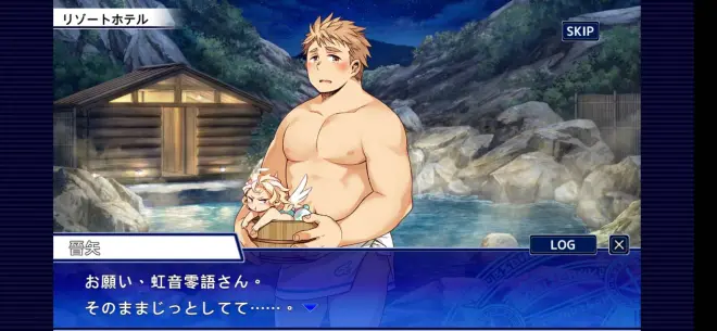 对方的手触到后背。不是温泉的热度,主角身上的温暖包住了晋矢的身体。