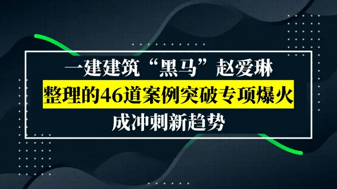 一建建筑今年最大的黑马当属赵爱琳老师,他根据一建建筑近5年真题,以及23年最新考纲,整理出来了46道经典必考案例,浓缩了历年来的高频考点,将理论与实践进行紧密结合,深挖重点,可以说是一针见血,案例重点、答题技巧轻松掌握。