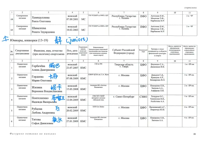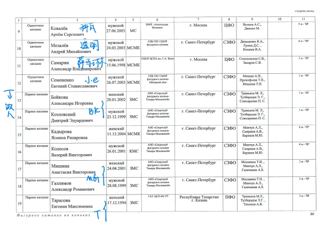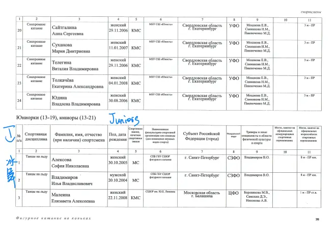 前面是“教练”的国家队 实在翻译不出来。。 大片空白基本都是双人冰舞和队列滑。。 双人和冰舞应该有我认识的没标出来。。 太难翻译了!! 好多拆队的已经把我拆蒙了。。所以我都没写qwq