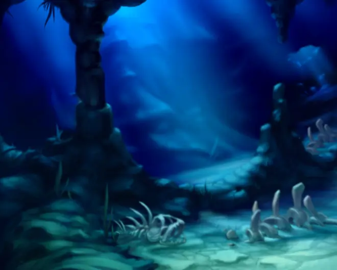 吞食鱼2有9张背景图片,其中一张是PS合成的。
