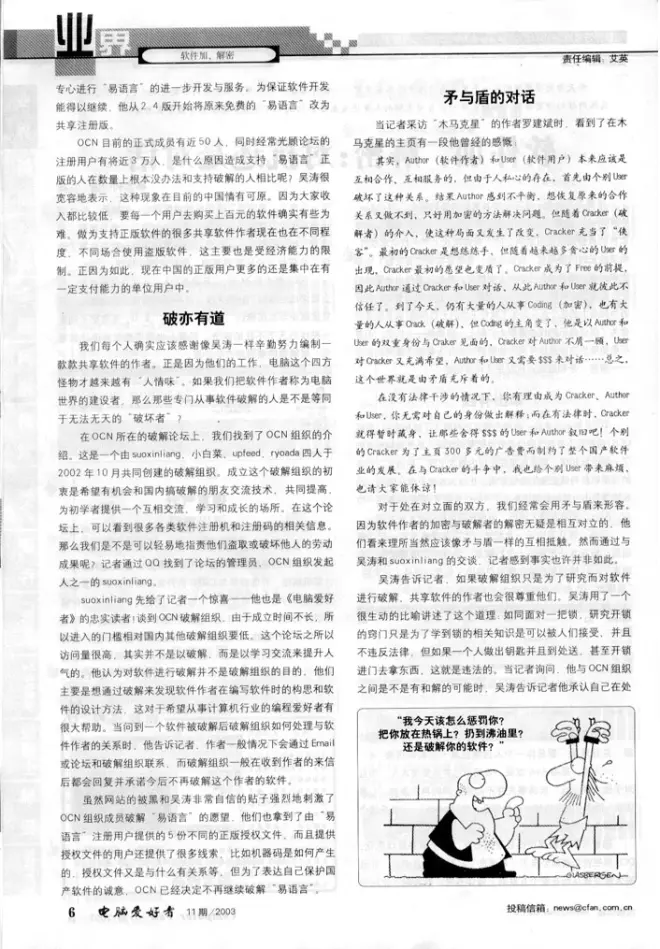 2003年6月1日《电脑爱好者》11期 《软件加、解密:对抗还是对话1》