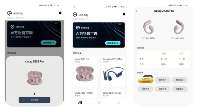 AI降噪畅快沟通如在耳畔,sanag APP交互体验更多操控乐趣