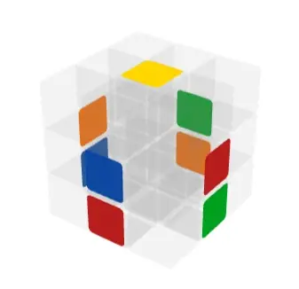 在脑中对手中魔方侧面4个中心块进行重新上色,根据两基标棱块的颜色,以及我们烂熟于心的颜色顺序来重新确定4个侧成中心块的颜色,以基点棱块的颜色来定义中心块的假想颜色。